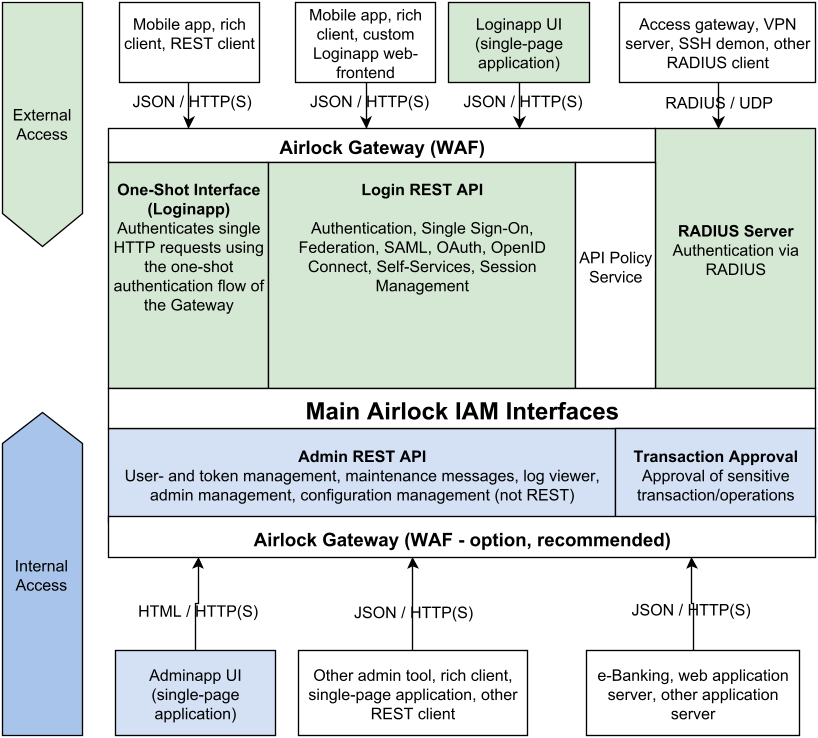 Loginapp One-Shot Interface | Loginapp | Processes single HTTP requests send to IAM by the Gateway using “one-shot” authentication flow. Used for REST API protection and alike. | Airlock Gateway | External | Loginapp >> One-Shot Authentication |