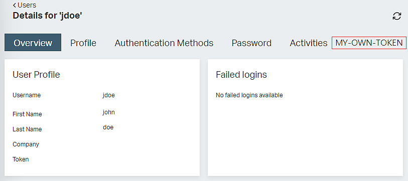 The managed data has to be connected to a user and is displayed on the user detail page as in the following example:
