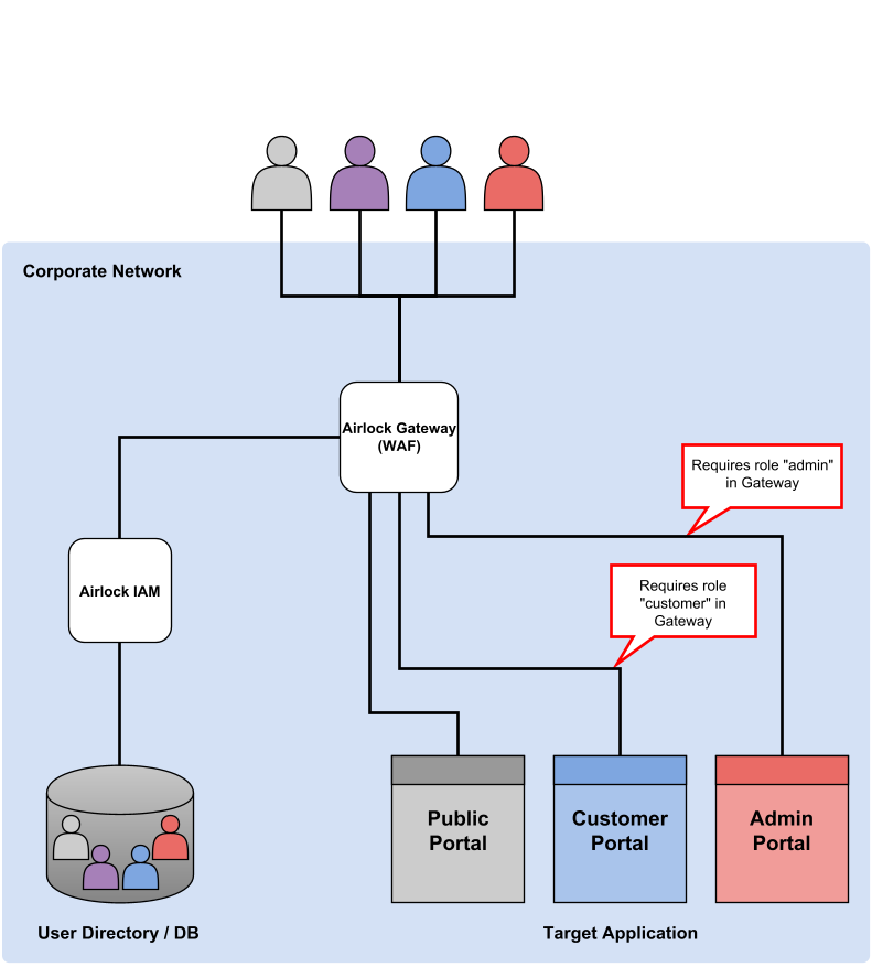The following picture shows a simple architecture sketch, where Airlock Gateway enforces the access control decision taken by Airlock IAM: