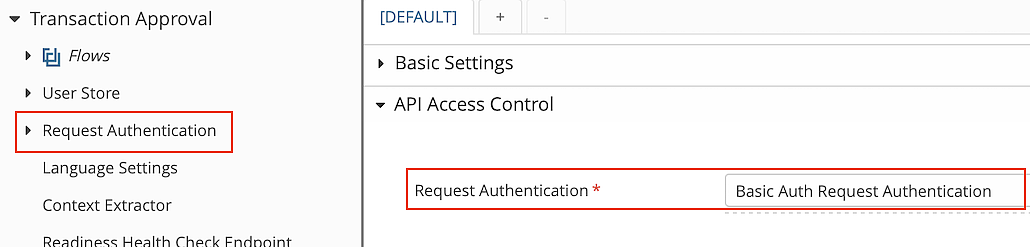To ensure that transaction approvals can only be performed by valid delegating entities (e.g. the e-banking system) the delegating entity must be authenticated by configuring a Request Authentication plugin.
