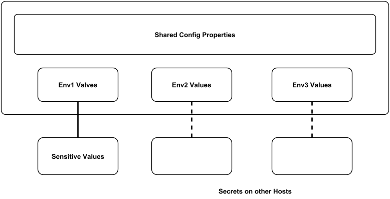 - The configuration for all environments is stored in one configuration file (