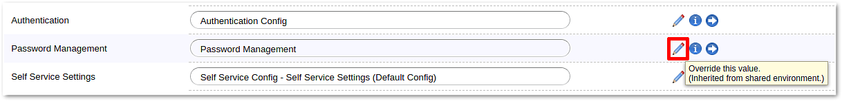 - Define the environment-specific value for the selected environment by overriding the current value clicking on