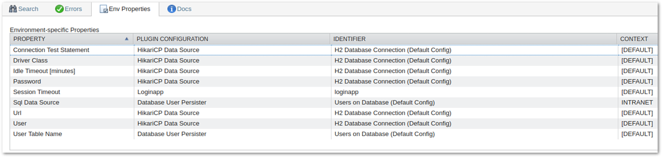 All properties with environment-specific values for the selected environment can be reviewed in the “Env Properties” Panel.