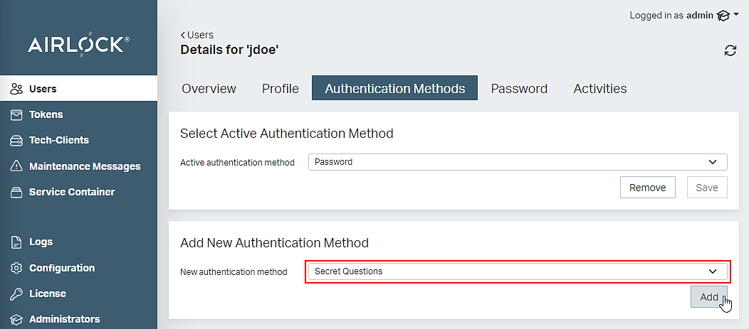 - Step 1: Add new Authentication method of type Secret Questions to user: