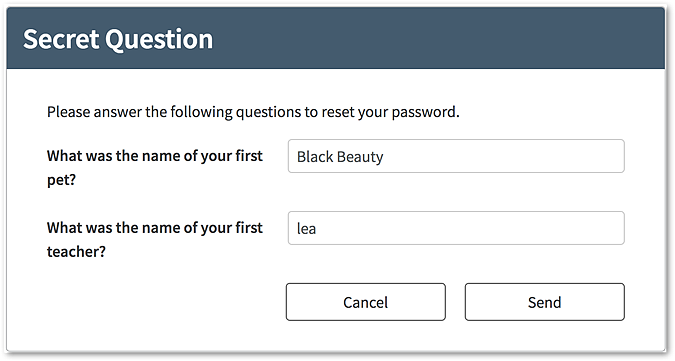 The Password reset self-service asks for answers to verify the entered user name. Secret questions are one of several means that can be used to verify the username.