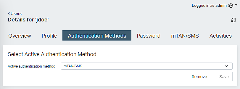 - The active authentication method of the user is mTAN/SMS and there is no mobile phone number registered.