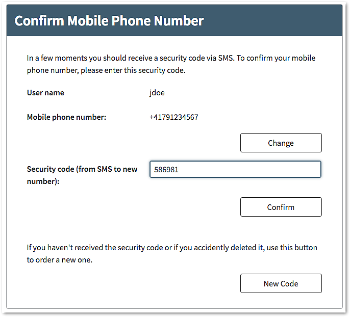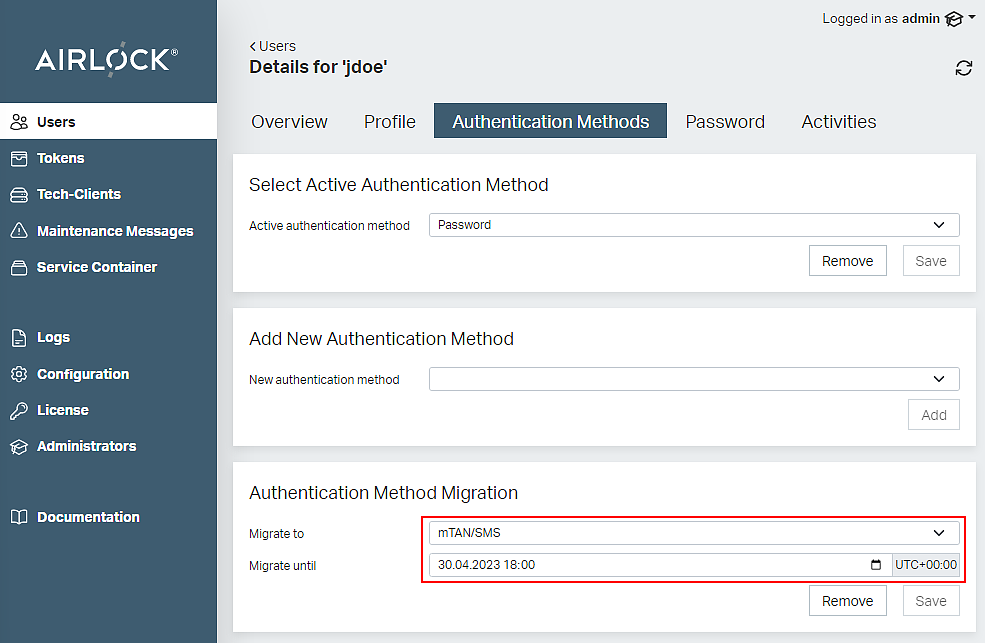 - The active authentication method of the user is now mTAN/SMS.