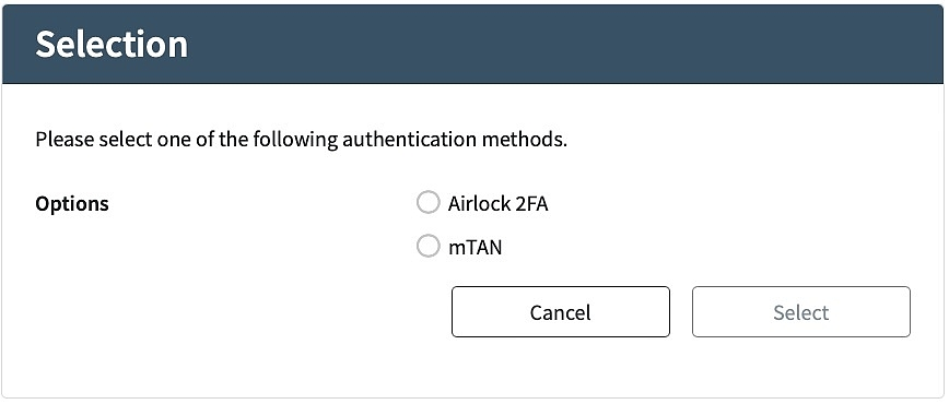 The following screenshot is an example from the Loginapp UI displaying the selection options in multi-factor authentication to the end-user: