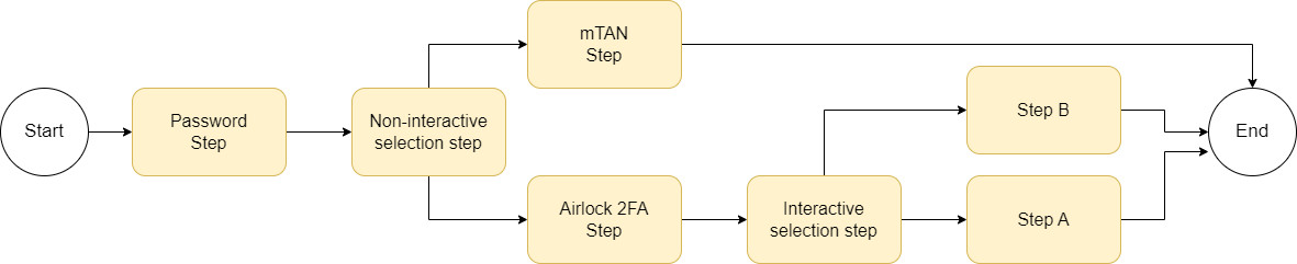 The following flow diagram shows an example of an authentication flow with multiple branches: