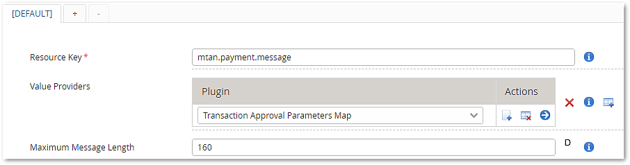 The configuration of the mTAN message provider consists of the Message Translation Key and the String Resource File (which normally doesn't need to be changed).