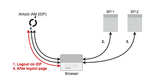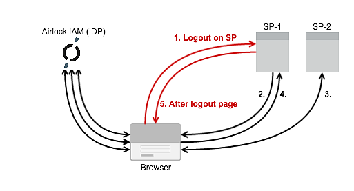 - The SP sends a “Logout Request” via the browser to the Airlock IAM-IDP.