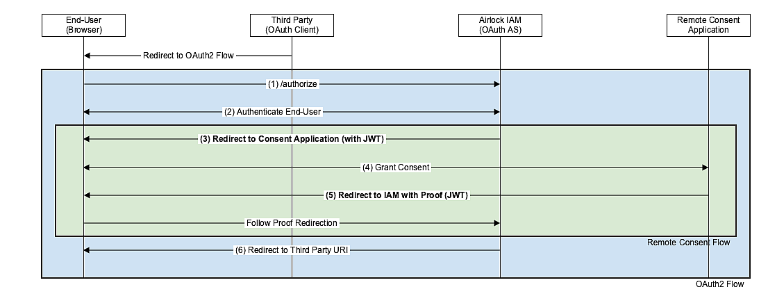 The Remote Consent Protocol is embedded in the OAuth 2.0 Authorization Code Grant Flow and begins after the end-user has been authenticated itself in IAM.