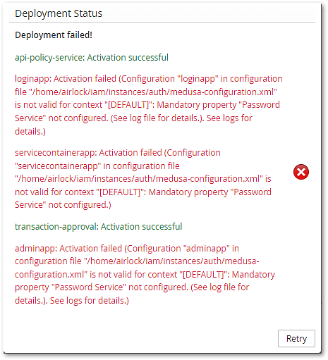 2. In the opening dialog, the configuration is validated. If the configuration is not valid, abort the activation by closing the dialog (press the Escape button on your keyboard or close the dialog window). Airlock IAM will continue running with the old (last valid) configuration.