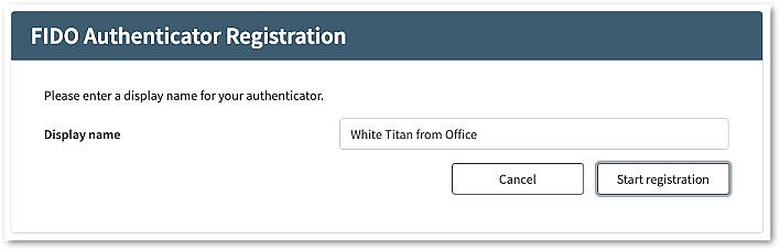 The end-user has to choose a display name for the registered FIDO passkey. The display name later helps the user (or the helpdesk) to identify the authenticator. This is especially important if a user registers multiple authenticators.