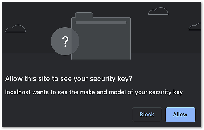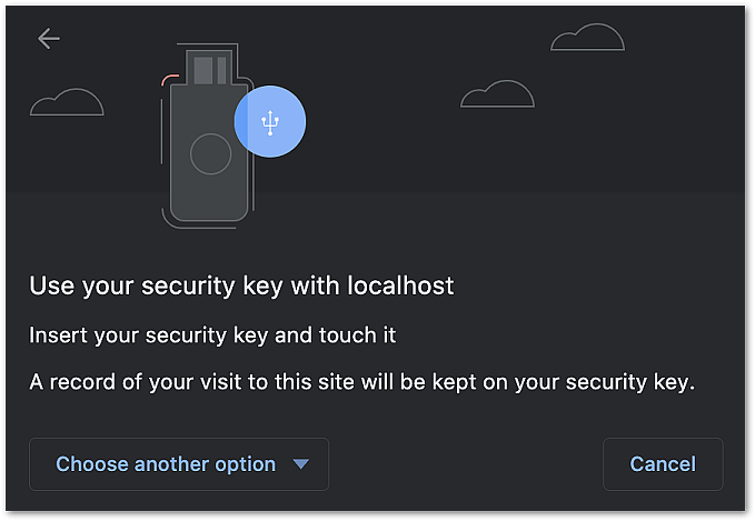 - Dialog requesting the end-user to insert and interact with the FIDO passkey: