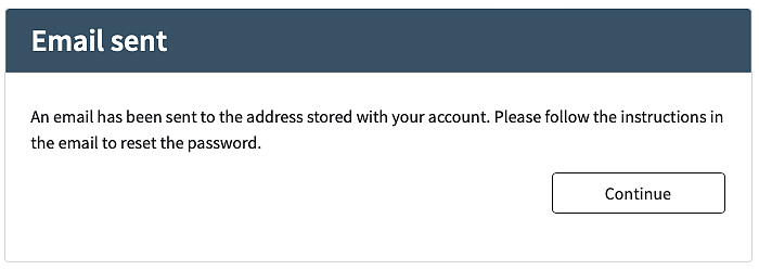- An email with a link is sent to the user and the following confirmation page is shown: