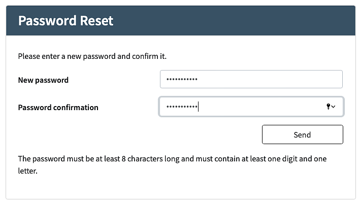 - After clicking on the link in the email, the password reset flow continues by asking the user to set the new password. Note that the following steps may be on a different session than the ones above.