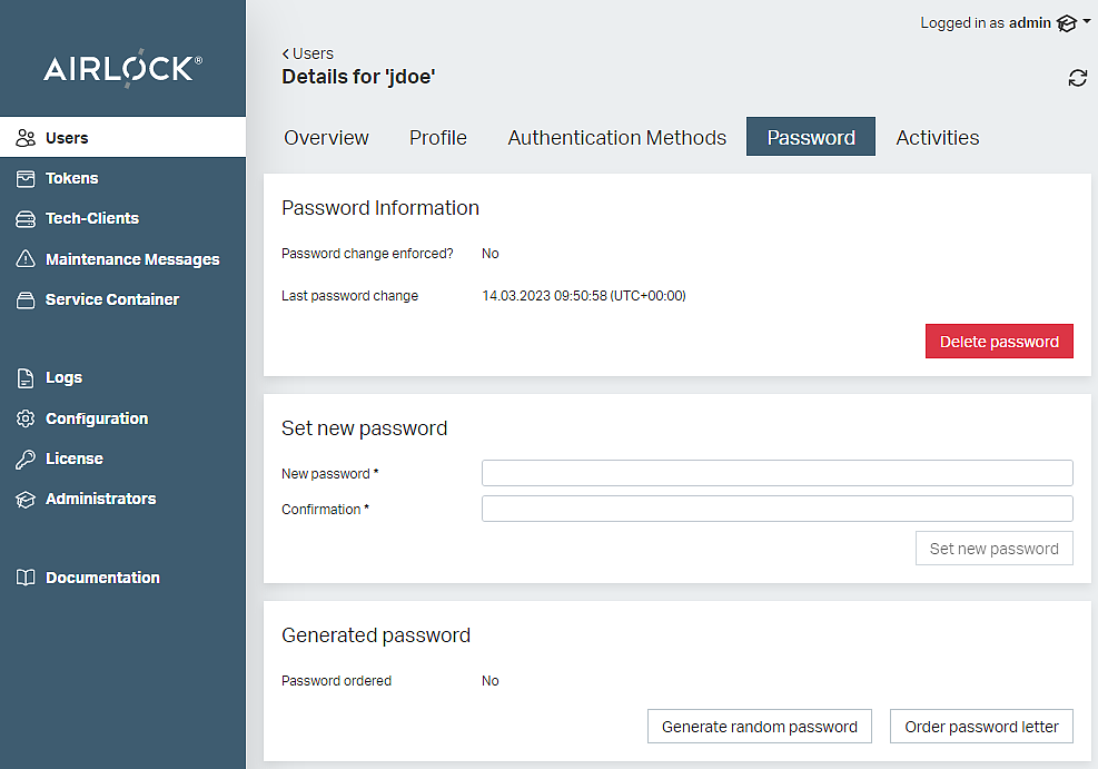 - Make sure the access control settings for password management are set as required: Adminapp >> Access Control >> Password Management