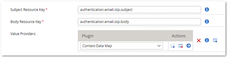 authentication.email.otp.body. - As Value Provider, select (or create) the plugin Context-Data Map: it makes all user context data available in the message template (e.g. first and last name of the end-user).