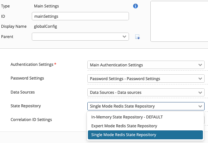 - Use a Single Node Redis State Repository for setups with one Redis node to talk to (this includes Redis Replication setups with one node address).