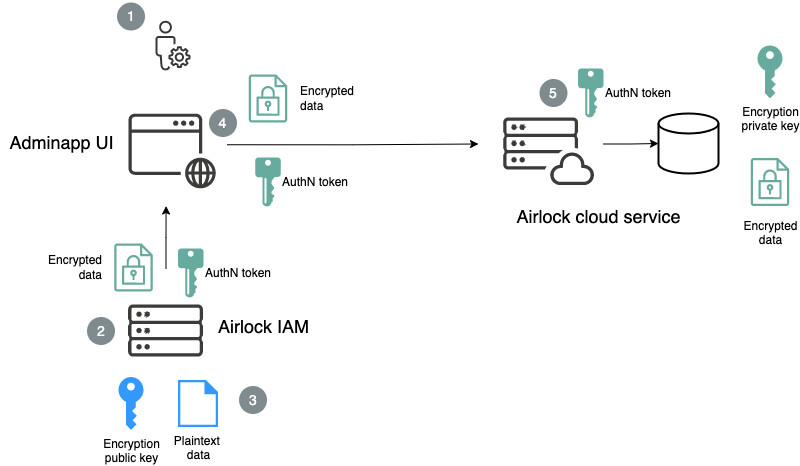 - The administrative user's browser authenticates with the Airlock cloud service and delivers the encrypted copy of the data.