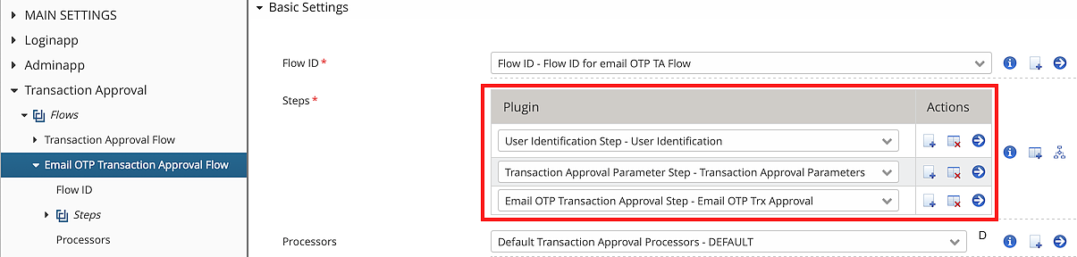 - The Email OTP Transaction Approval Step, to verify the OTP code towards the corresponding back-end.