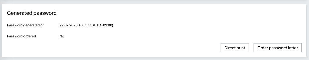 - Order the password letter by clicking Order password letter in the user's details page. The actual generation of the letter happens with the Password Letter task, which can be scheduled regularly. See further below for more information.