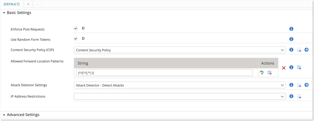The following example screen shows five properties with their values. Properties are organized in groups (e.g. “Basic Settings” and “Advanced Settings” in the screenshot below).