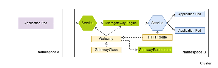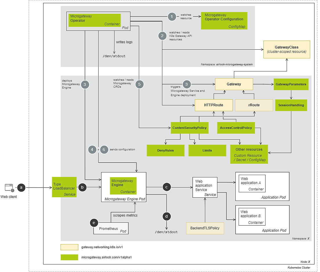 - The GatewayClass resource represents the class of gateway (here: Airlock Microgateway) that can be instantiated.